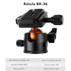 Cabezal panorámico de bola 36 mm con rotación 360° para capturas precisas.